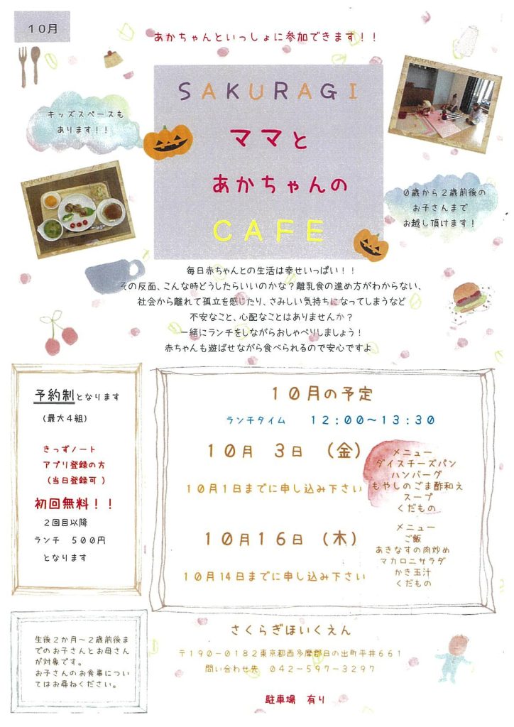 *各回4組まで。初めての方はお電話にてご予約ください。